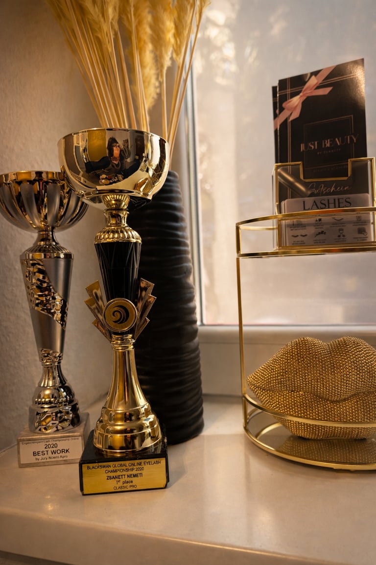 Ihre zahlreichen Pokale und Awards – darunter Siege bei der Blackswan Global Online Eyelash Championship, der Lash Barbie International Championship und den Engelswimpern Lash Championships – spiegeln ihr außergewöhnliches Können und ihre Hingabe wider. Zsanett zählt zu den ausgezeichneten Beauty-Expertinnen ihrer Generation. Mit ihrer Leidenschaft für Präzision, Kreativität und Innovation hat sie sich in der internationalen Beauty-Szene einen Namen gemacht.